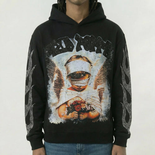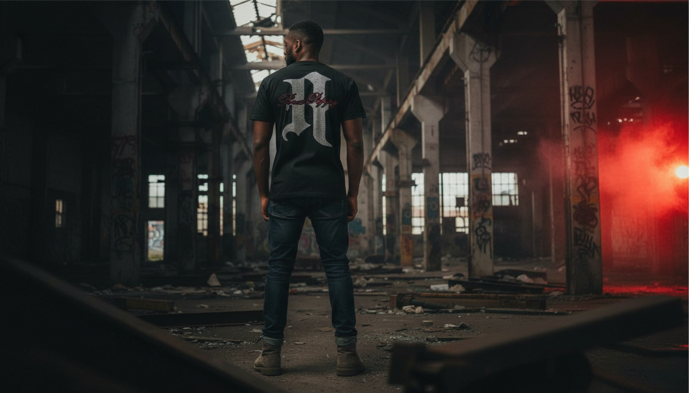 We make streetwear for men who treat getting dressed like a creative act. Rhinestones on heavyweight cotton. Hand-stitched angels on 12oz denim. Chains that hang like they mean something.